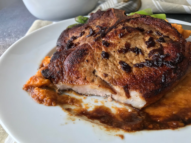 When choosing pork for a recipe, be sure there is a nice white marbling throughout the chop - that will produce a more flavorful and tender piece of pork.